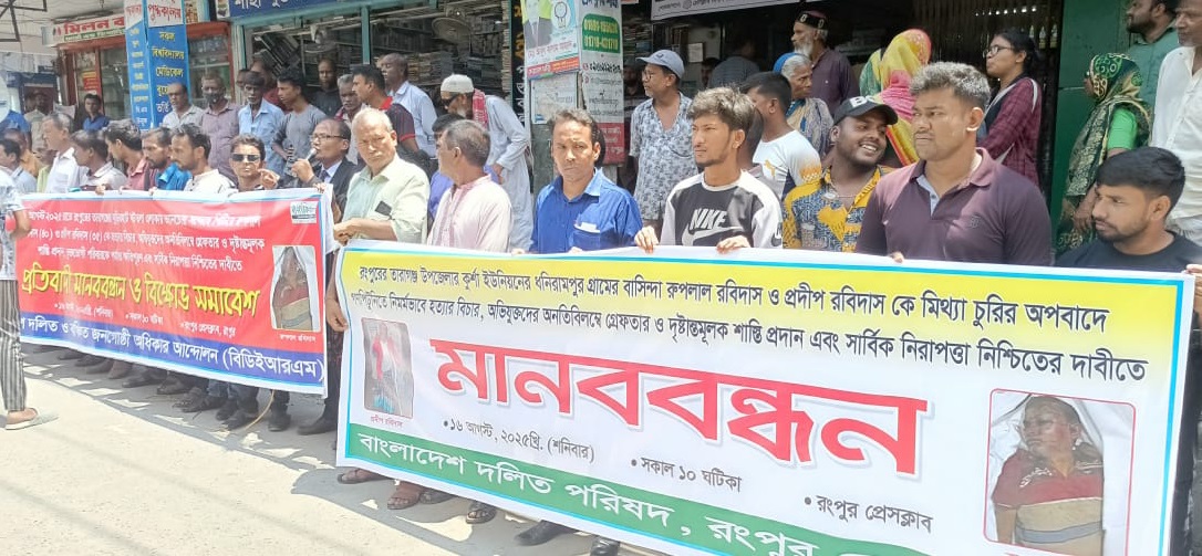 গণপিটুনিতে হত্যার ঘটনায় জড়িতদের গ্রেফতার ও বিচারের দাবিতে মানববন্ধন