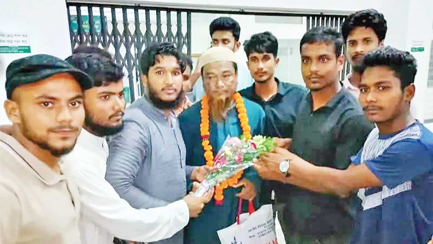 নকল সরবরাহ করা সেই শিক্ষককে ফুল দিয়ে বরণ