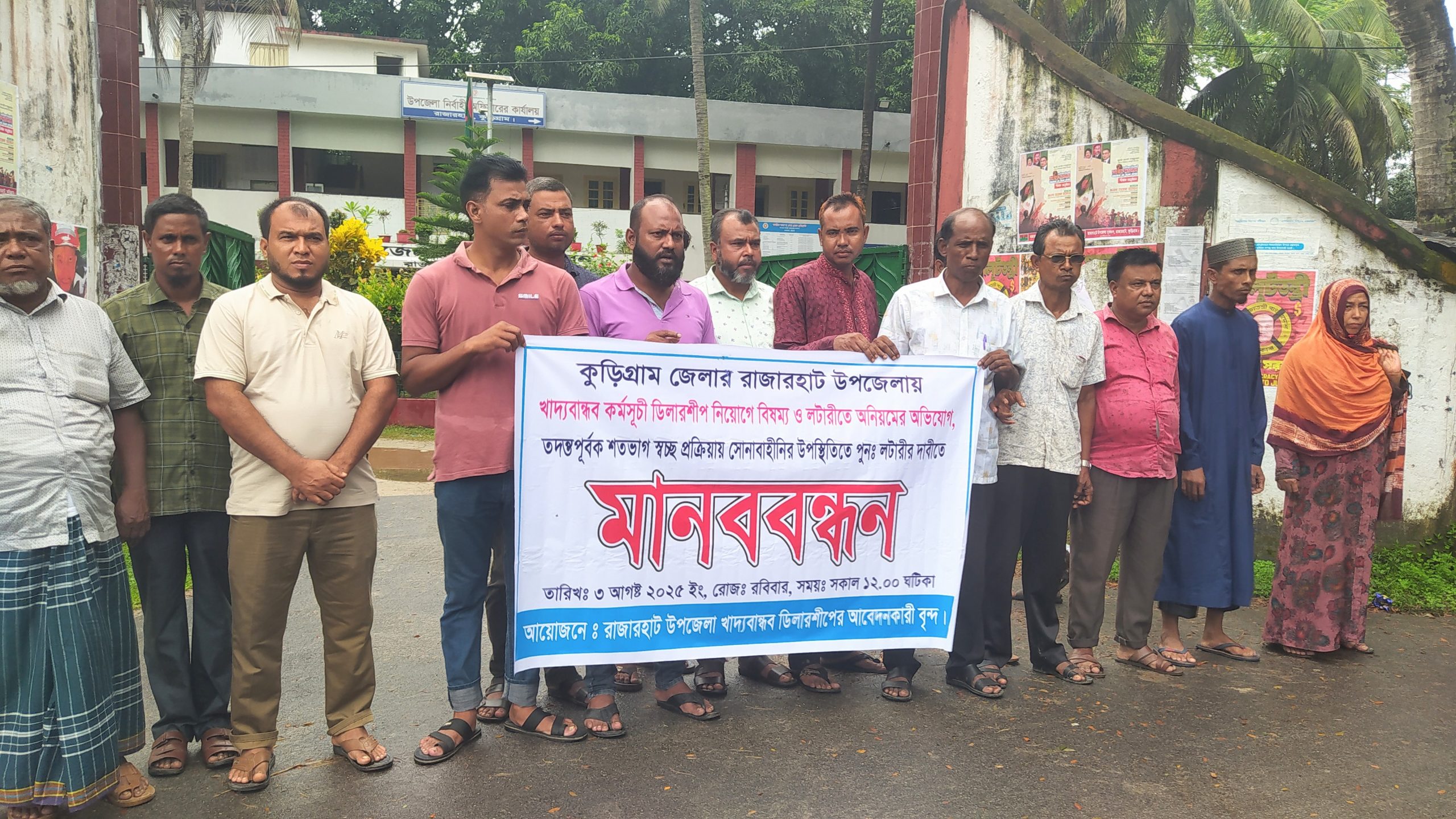 রাজারহাটে খাদ্যবান্ধব ডিলারশিপ নিয়োগে অনিয়মের অভিযোগে মানববন্ধন