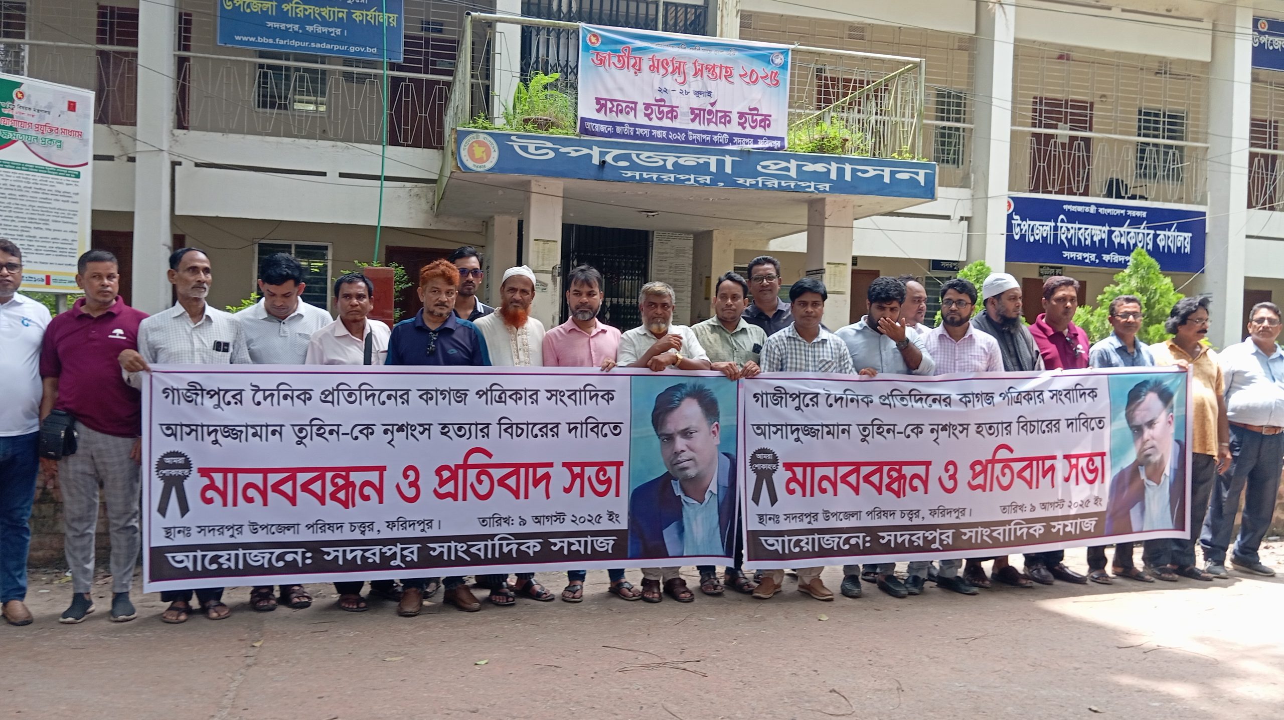 সাংবাদিক তুহিন হত্যার প্রতিবাদে সদরপুরে মানববন্ধন