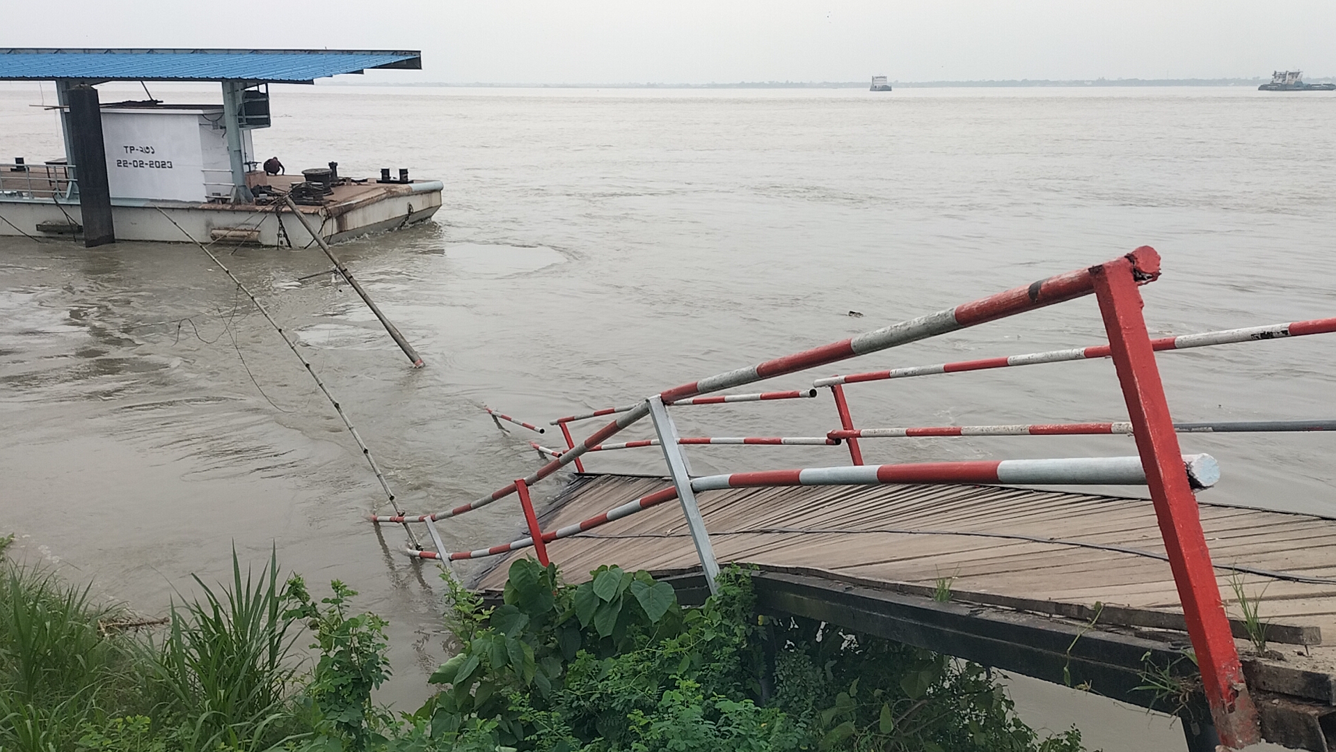 তীব্র স্রোতে লঞ্চঘাটের জেটি ভেঙে পড়েছে, ঝুঁকিতে ফেরিঘাটও