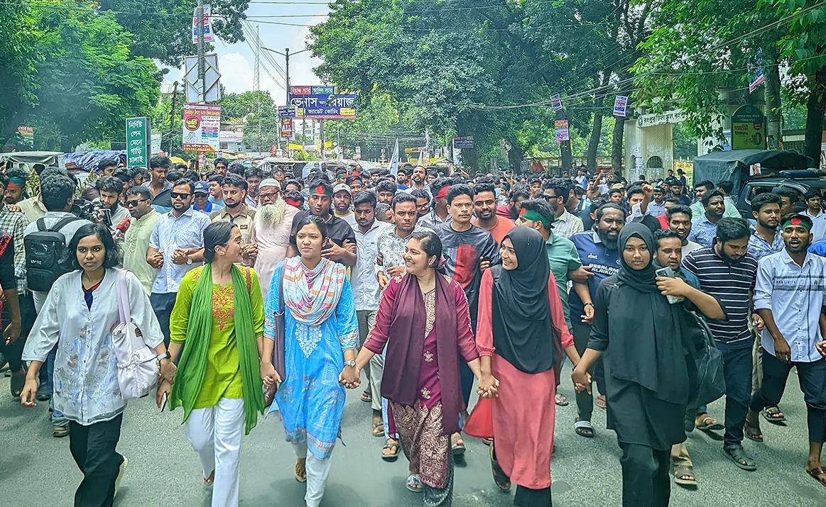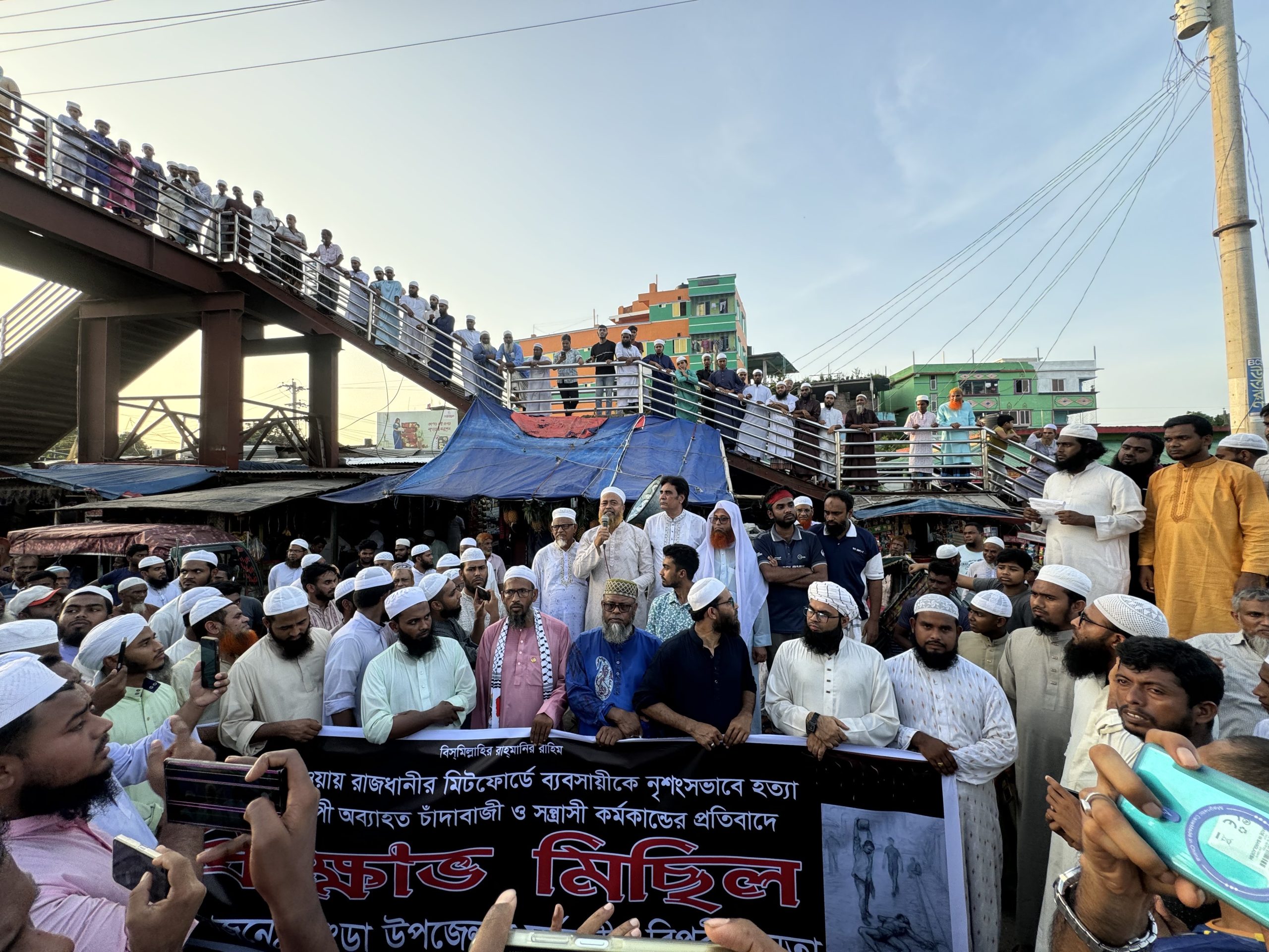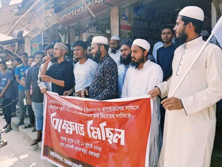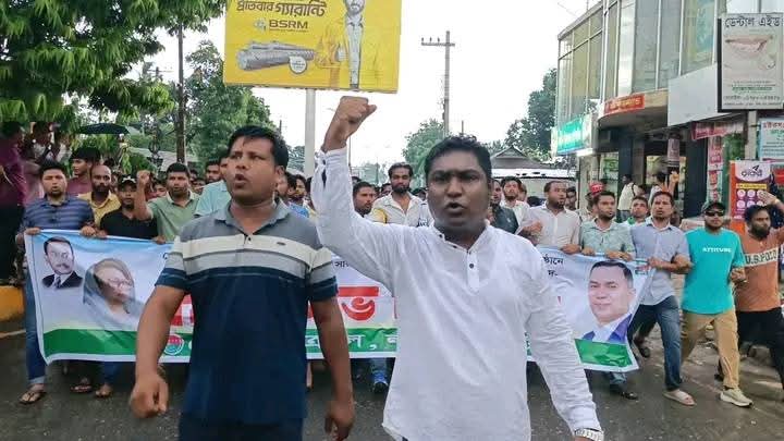 মিডফোর্ডে ব্যবসায়ী হত্যার প্রতিবাদে রাজারহাটে ছাত্র-জনতার বিক্ষোভ মিছিল