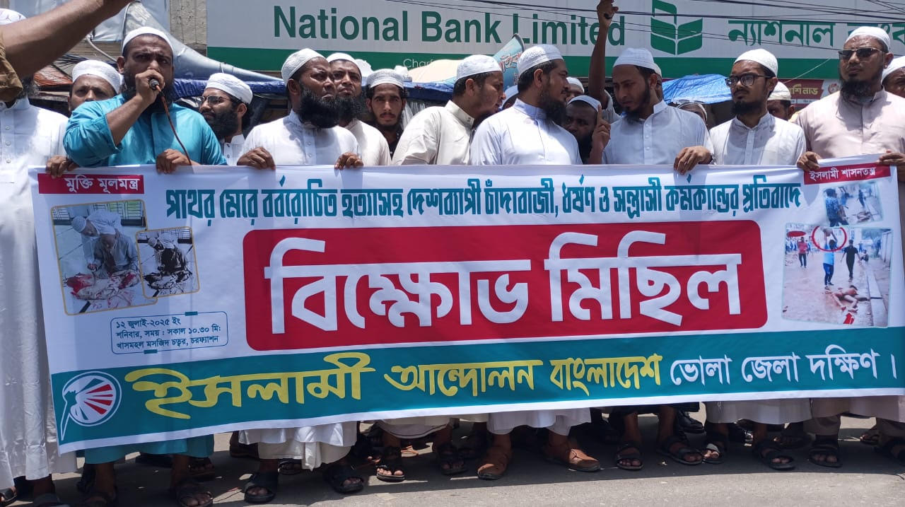 পুরান ঢাকায় ব্যবসায়ী হত্যার প্রতিবাদে চরফ্যাশনে ইসলামী আন্দোলনের বিক্ষোভ