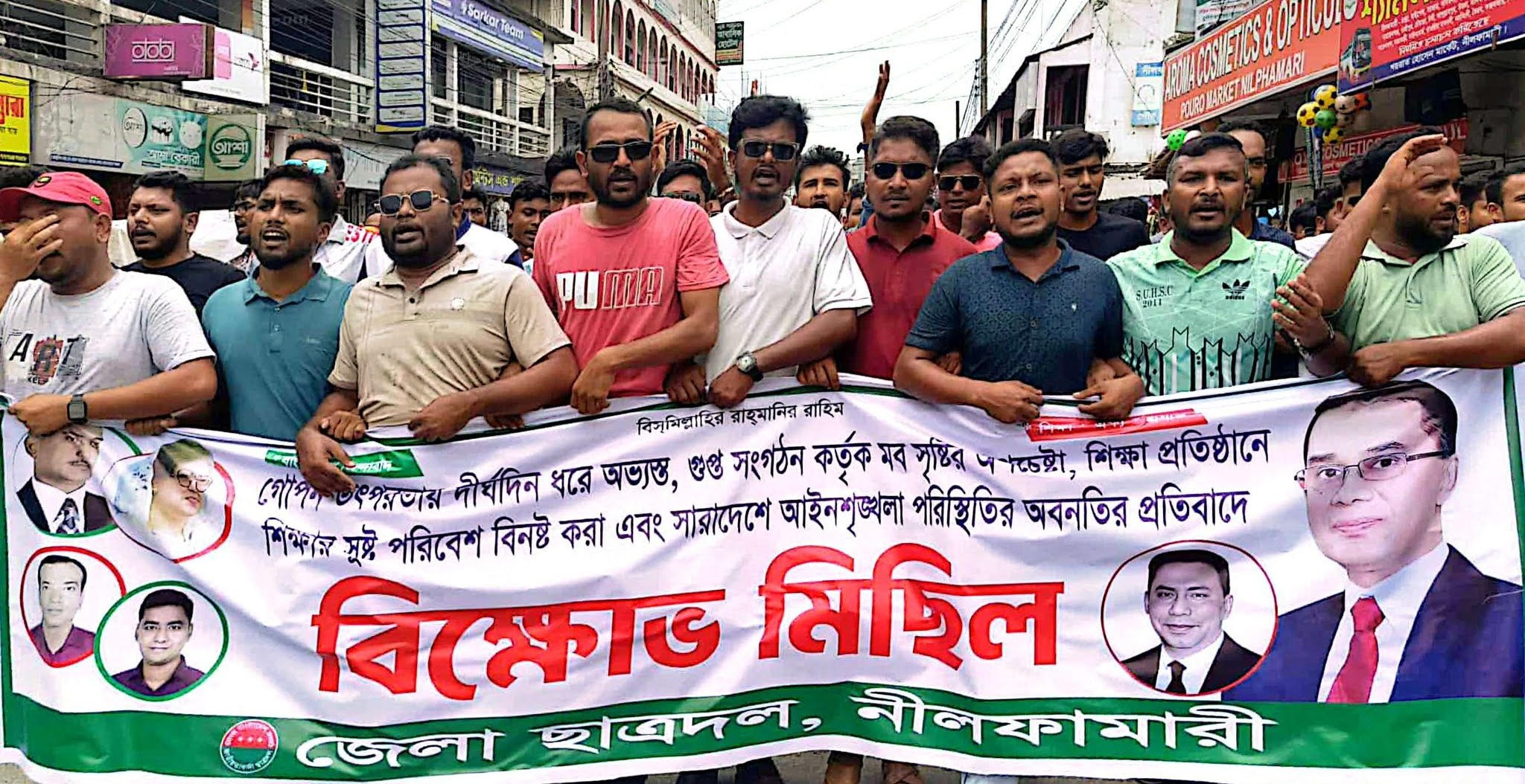 নীলফামারীতে ছাত্রদলের বিক্ষোভ মিছিল ও প্রতিবাদ সভা