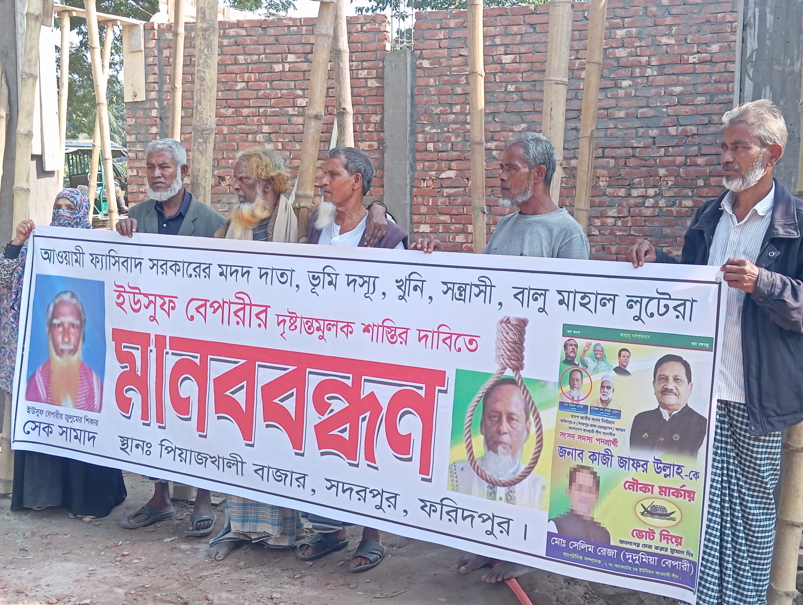 সদরপুরে আওয়ামী লীগ নেতার বিরুদ্ধে ভূমি দখলের অভিযোগে মানববন্ধন