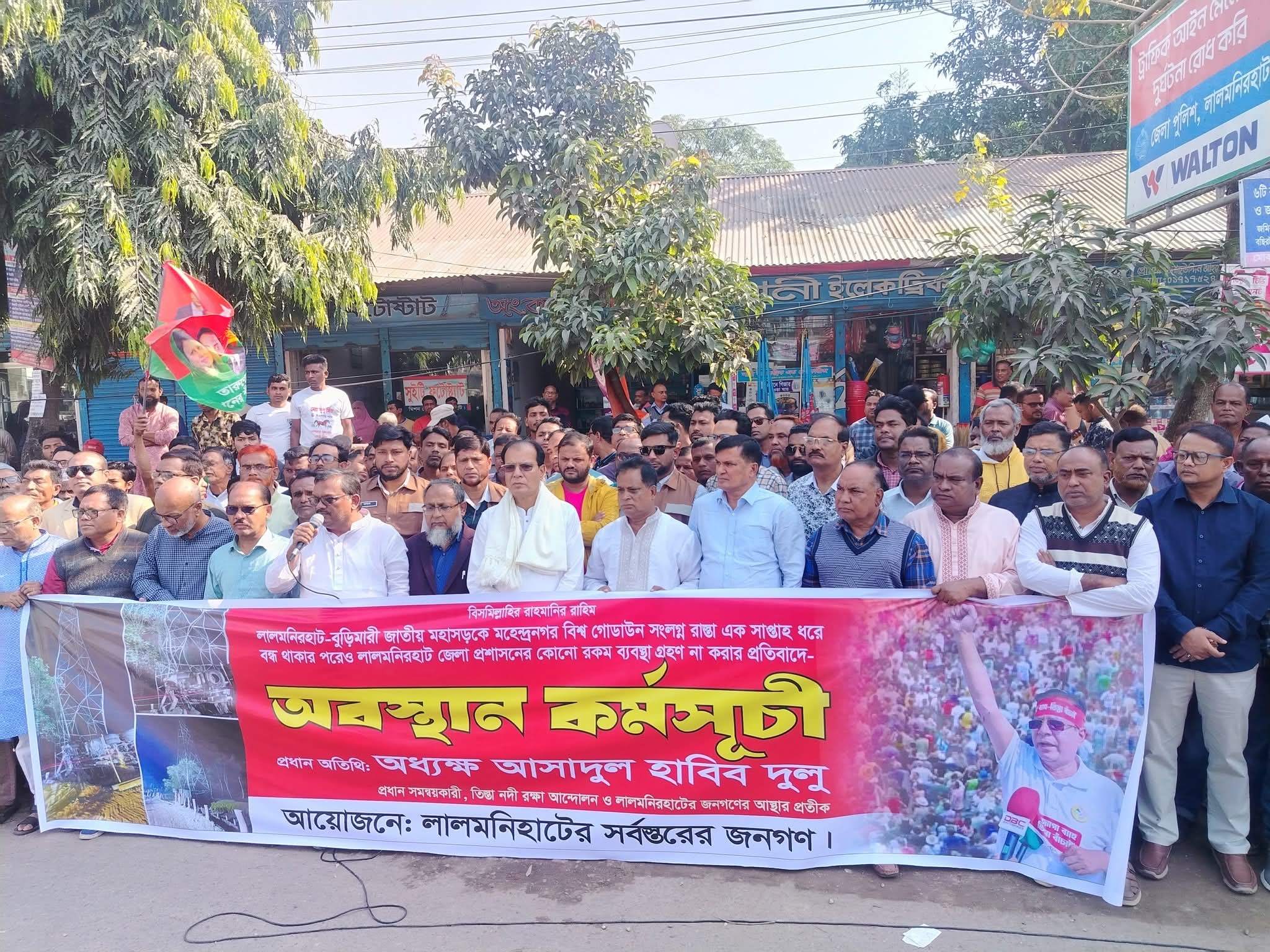 দুর্ঘটনায় সড়ক বন্ধ, জনদুর্ভোগ চরমে: লালমনিরহাটে অবস্থান কর্মসূচি পালন