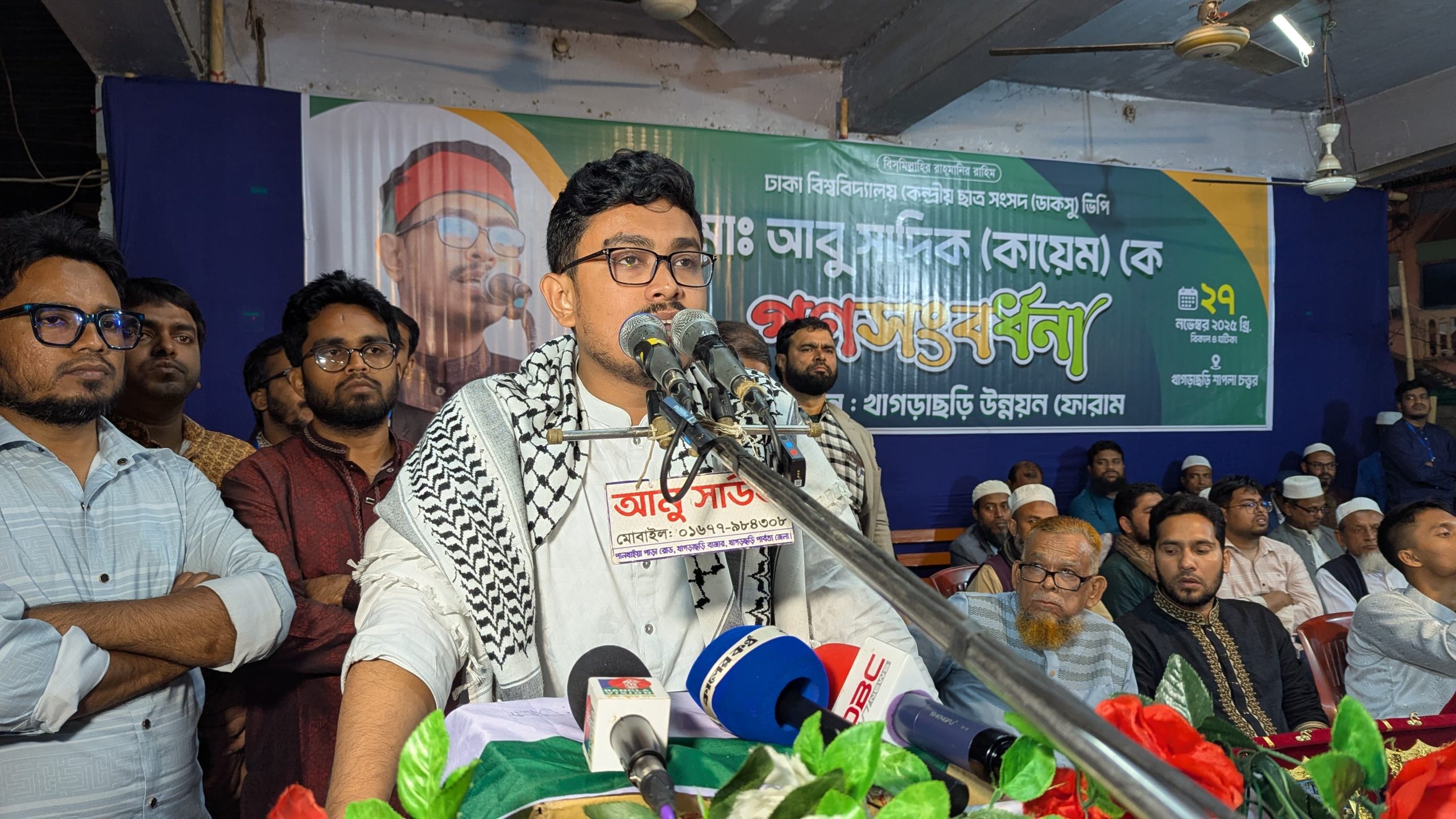 খাগড়াছড়িতে ডাকসু ভিপি আবু সাদিক কায়েমকে সংবর্ধনা
