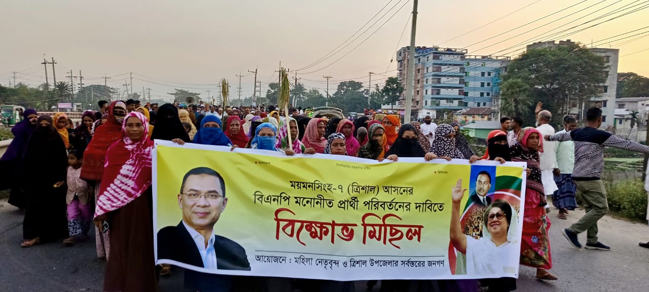 ত্রিশালে বিএনপির মনোনয়ন পরিবর্তনের দাবিতে বিক্ষোভ মিছিল