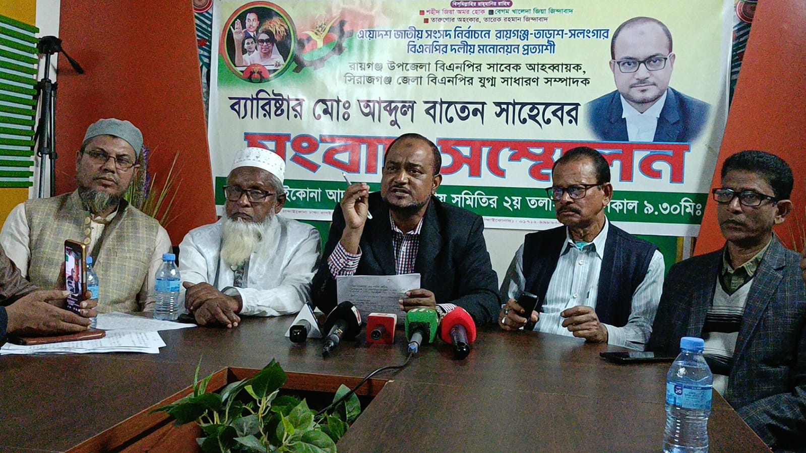 সিরাজগঞ্জ-৩ আসনে বিএনপির মনোনীত প্রার্থী ভিপি আয়নুল হকের পক্ষে সক্রিয় ভূমিকা জানিয়ে সংবাদ সম্মেলন