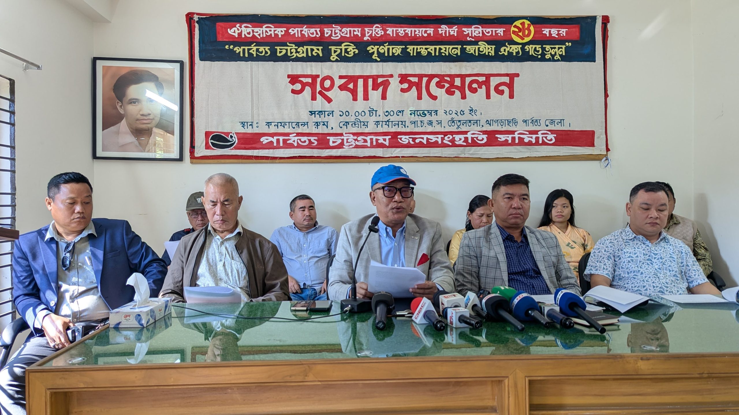 চুক্তি বাস্তবায়নের দাবিতে জনসংহতি সমিতির সংবাদ সম্মেলন
