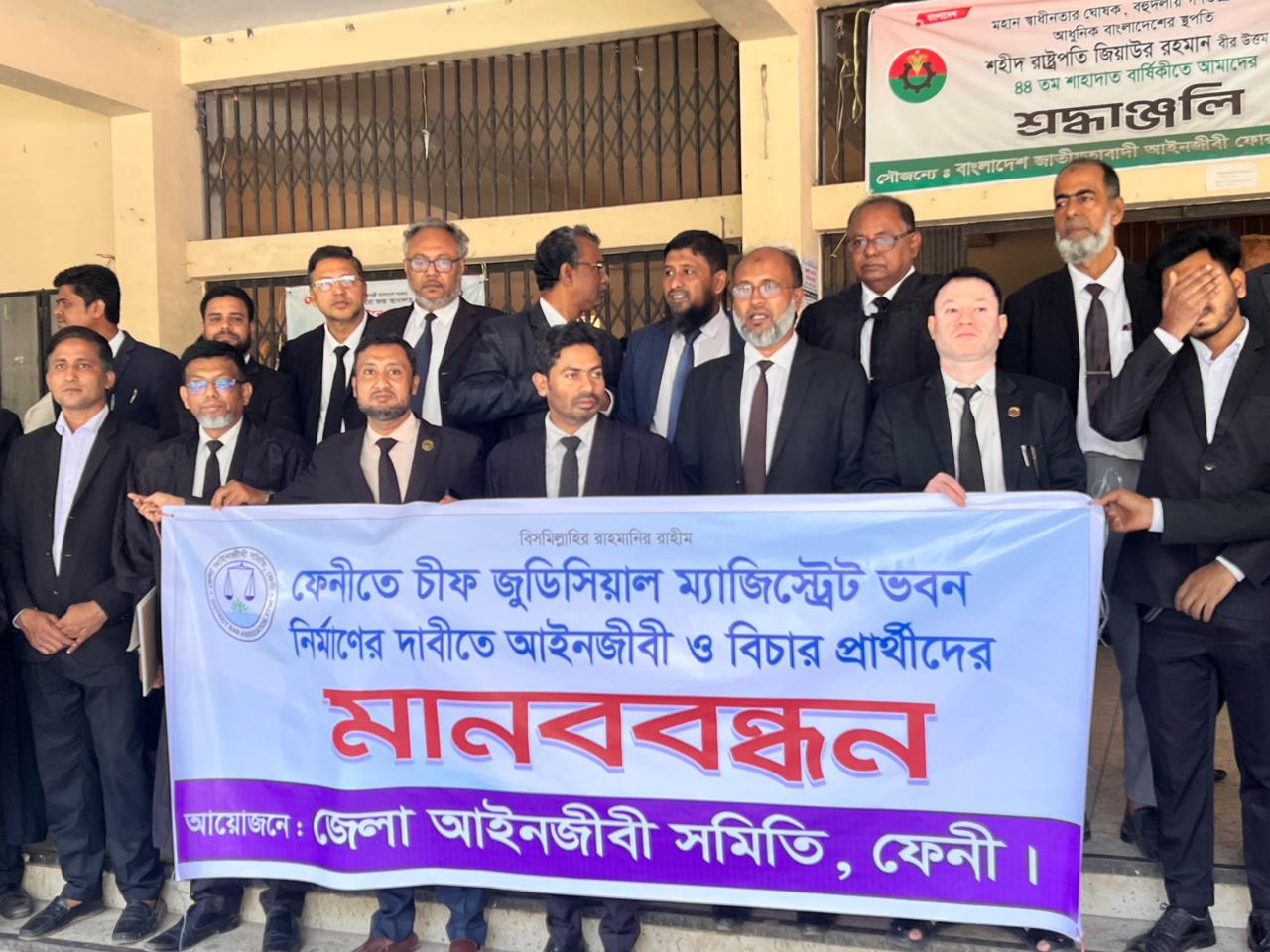 ফেনীতে চীফ জুডিশিয়াল ম্যাজিস্ট্রেট ভবন নির্মাণে দ্রুত পদক্ষেপের দাবিতে মানববন্ধন