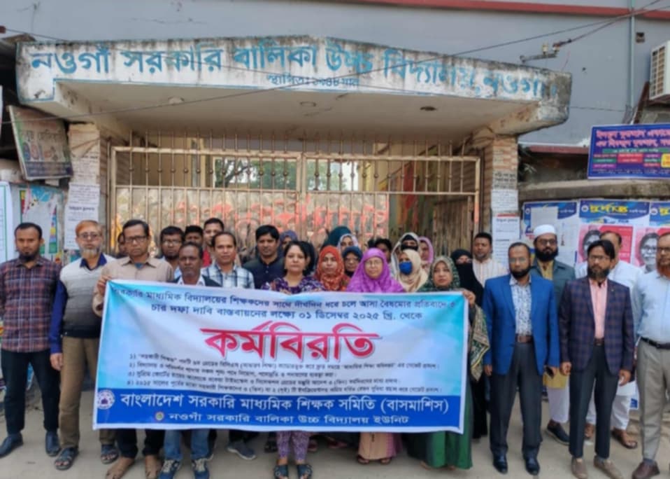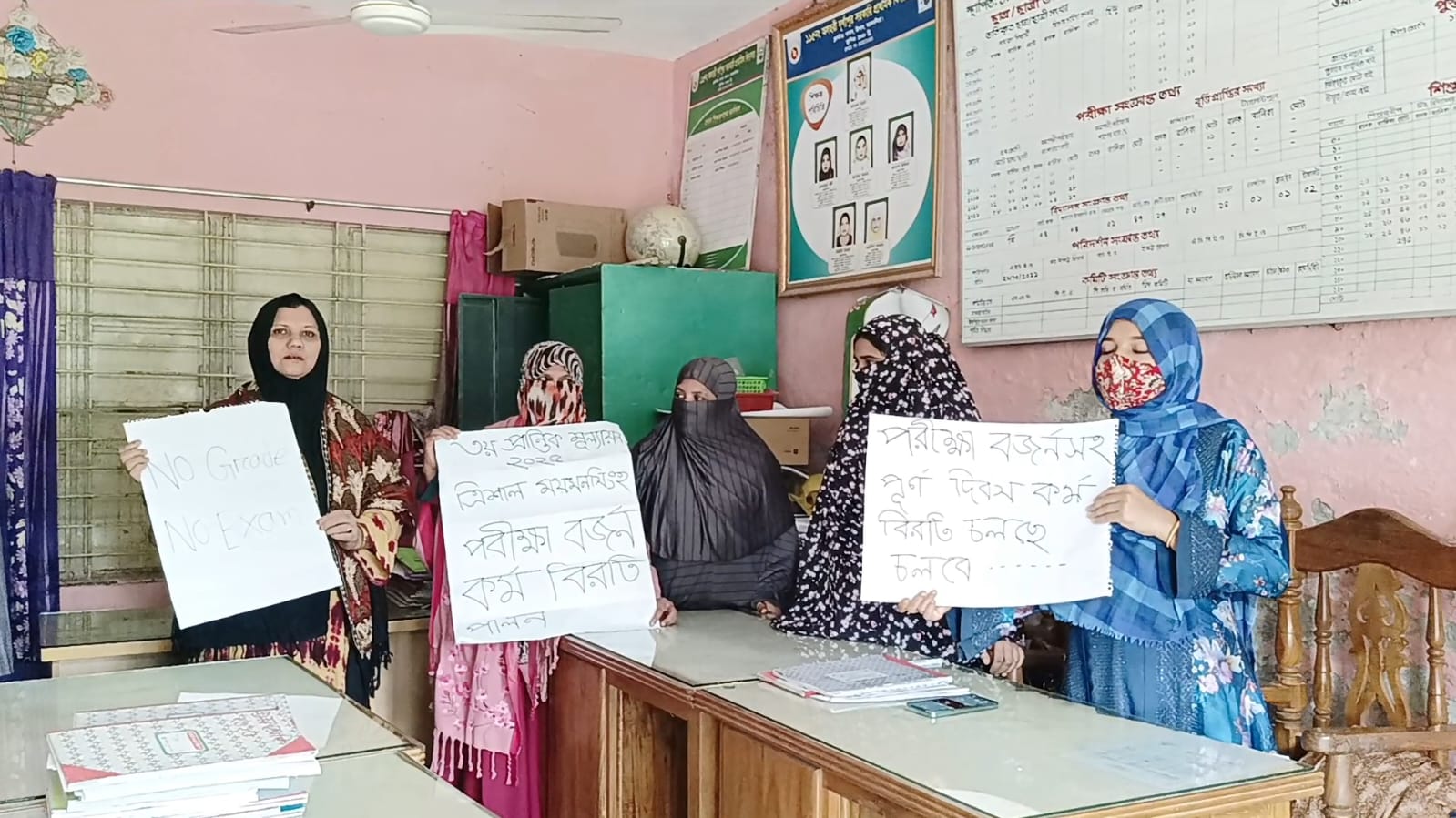 নওগাঁয় শিক্ষকরা কর্মবিরতিতে, পরীক্ষা বন্ধ; দাবির প্রতি শিক্ষার্থীদের সমর্থন