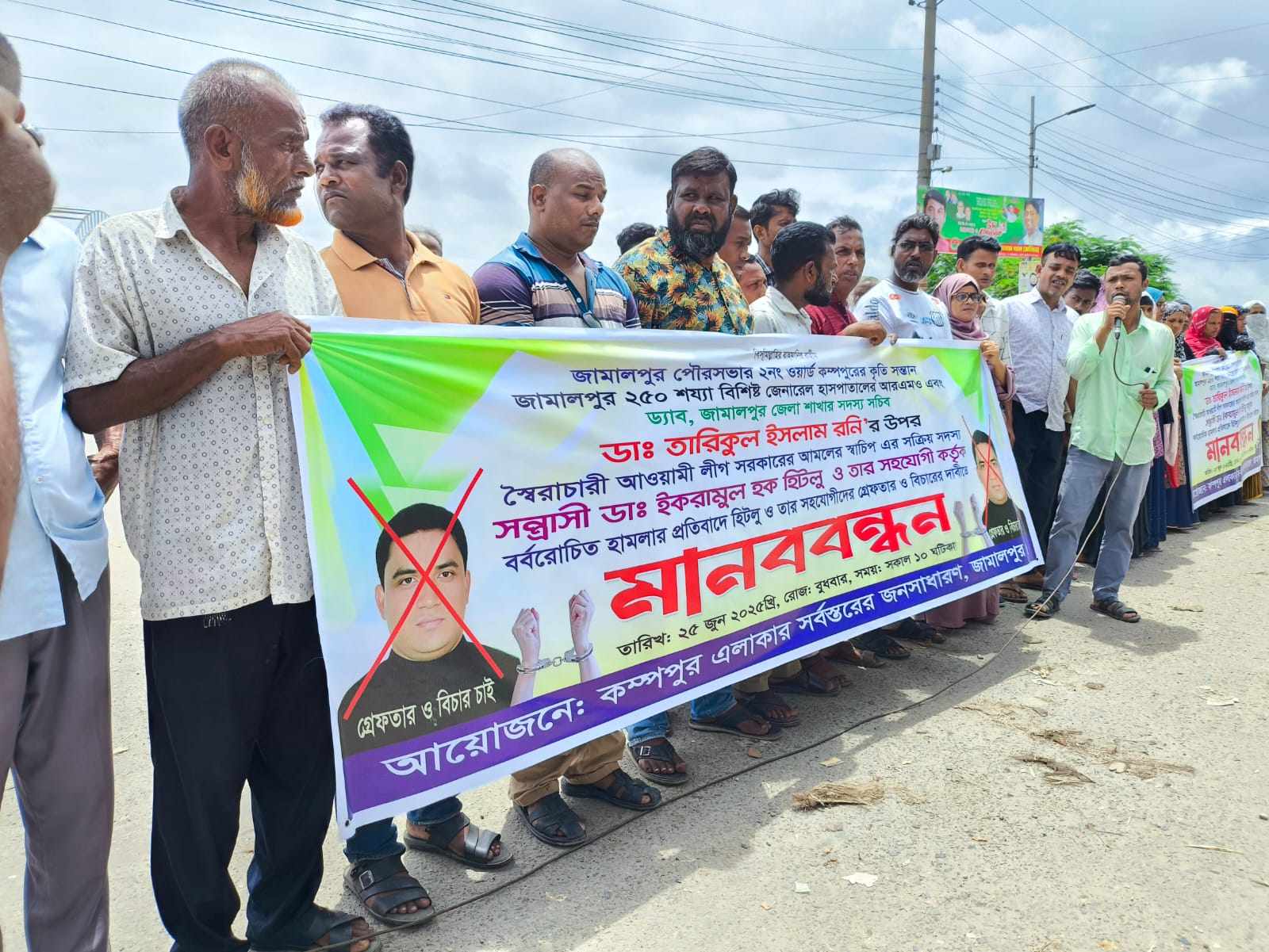 জামালপুর হাসপাতালের আরএমও’র উপর হামলা প্রতিবাদে মানববন্ধন
