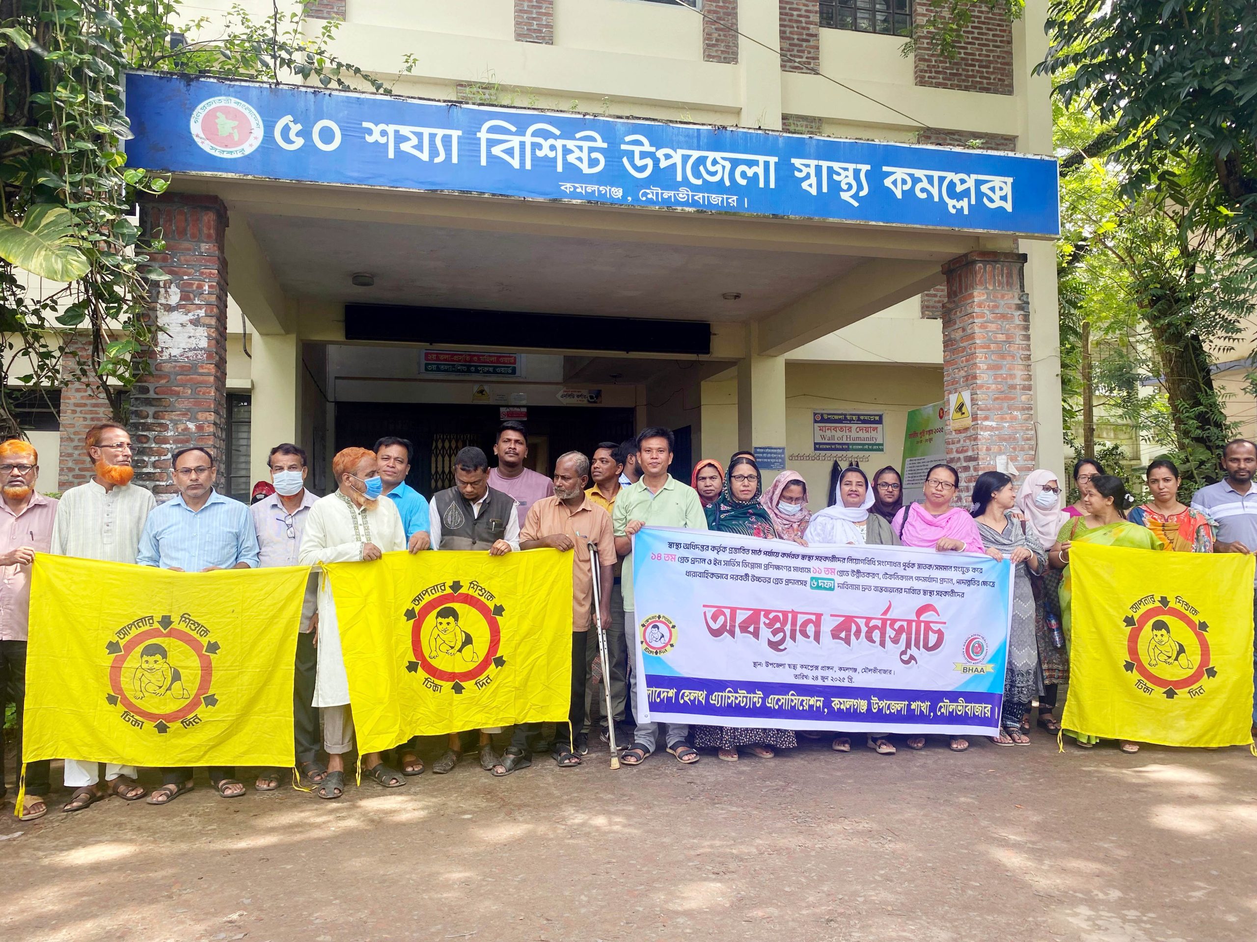 কমলগঞ্জে স্বাস্থ্য সহকারীদের ৬ দফা দাবিতে দুই ঘন্টা অবস্থান কর্মসূচি