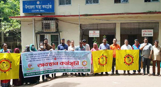 বোয়ালখালীতে ৬ দফা দাবিতে স্বাস্থ্য সহকারীদের অবস্থান কর্মসূচি