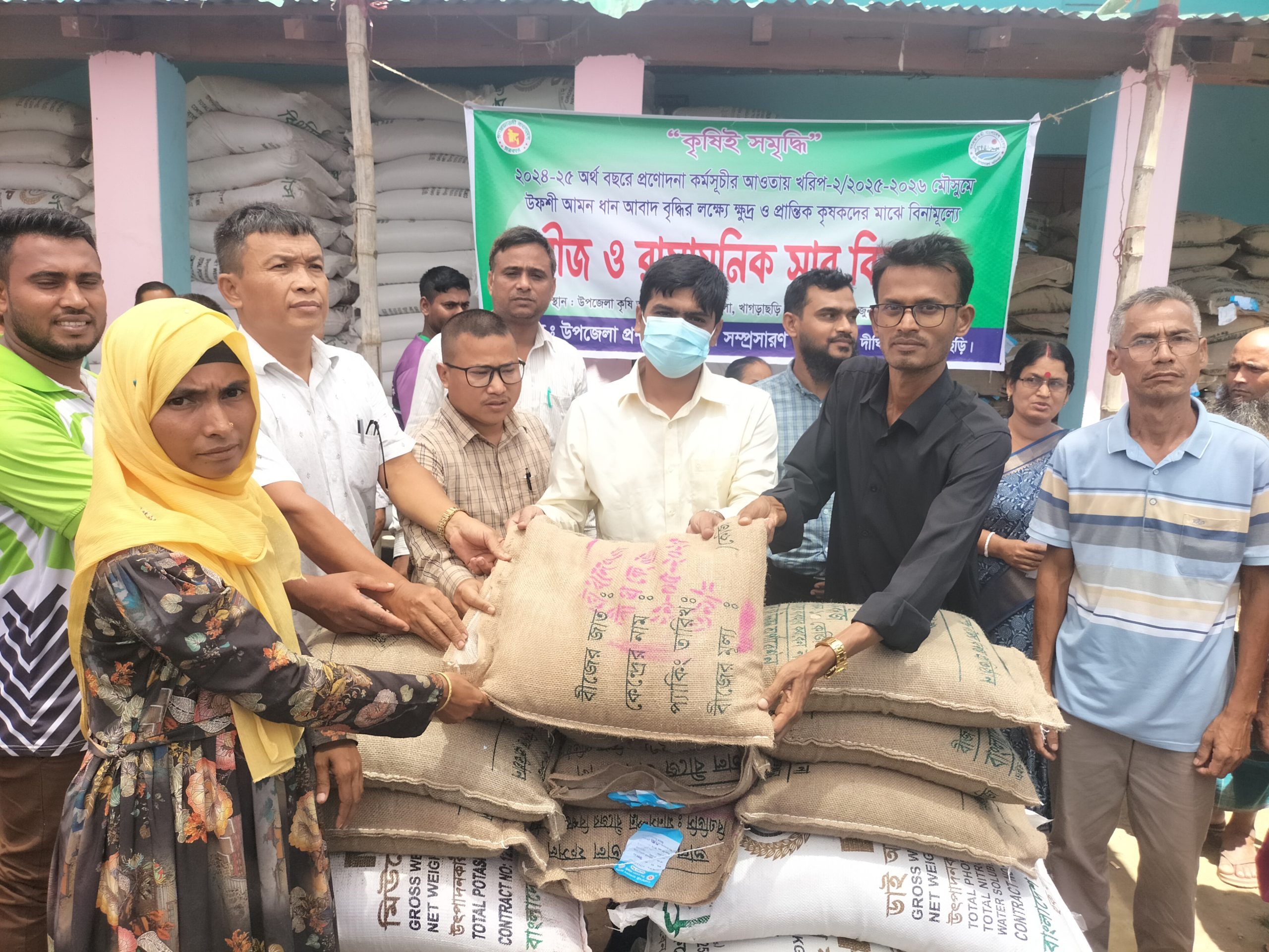 দীঘিনালায় কৃষকদের মাঝে আমন ধান বীজ ও সার বিতরন