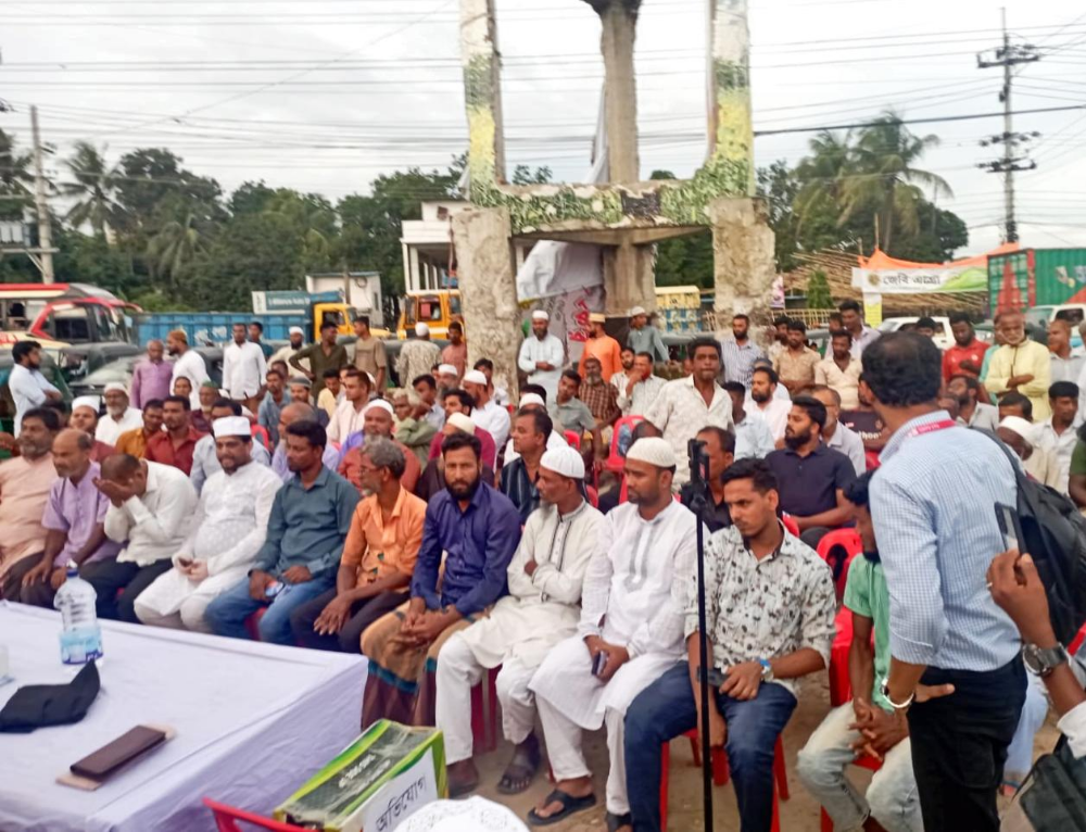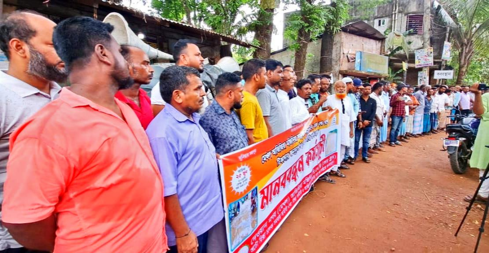 হাটহাজারীতে বন্ধ হয়ে যাওয়া সড়কের কাজ চালুর দাবিতে মানববন্ধন