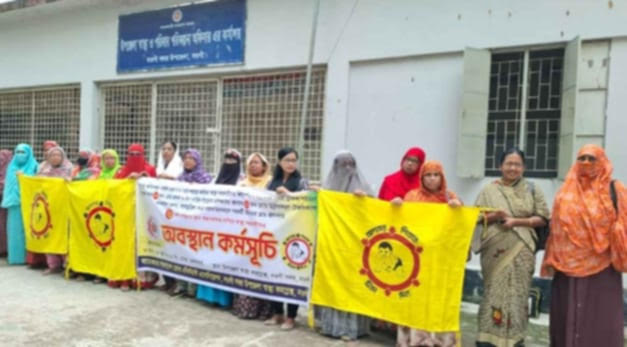 ছয় দাবিতে নওগাঁয় স্বাস্থ্য সহকারীদের অবস্থান কর্মসূচি পালন