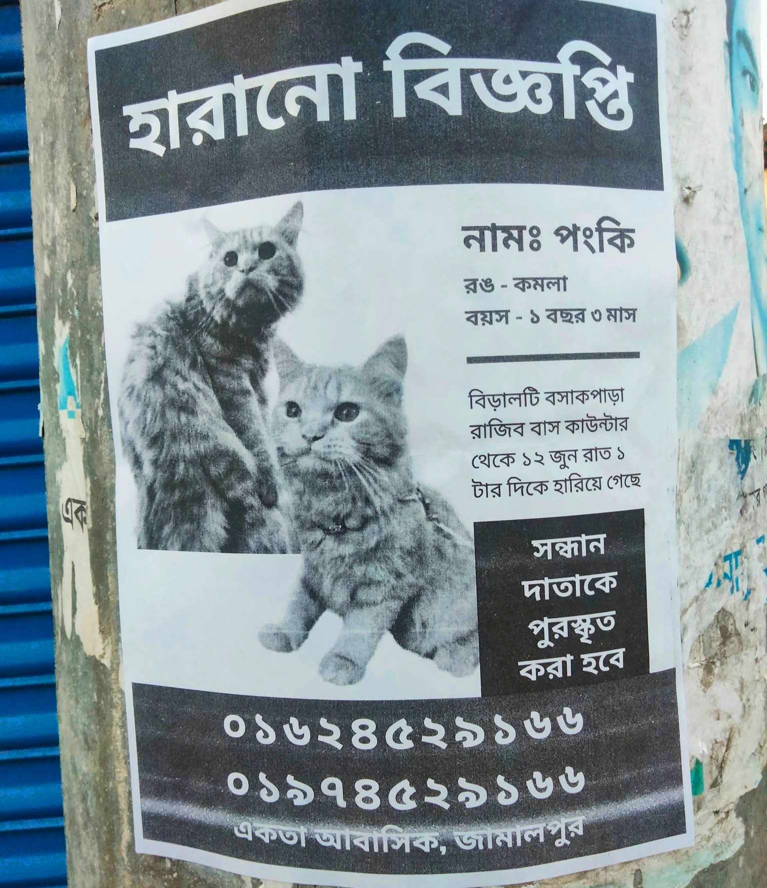 জামালপুরে পোষা বিড়ালের সন্ধান পেতে পুরস্কার ঘোষণা
