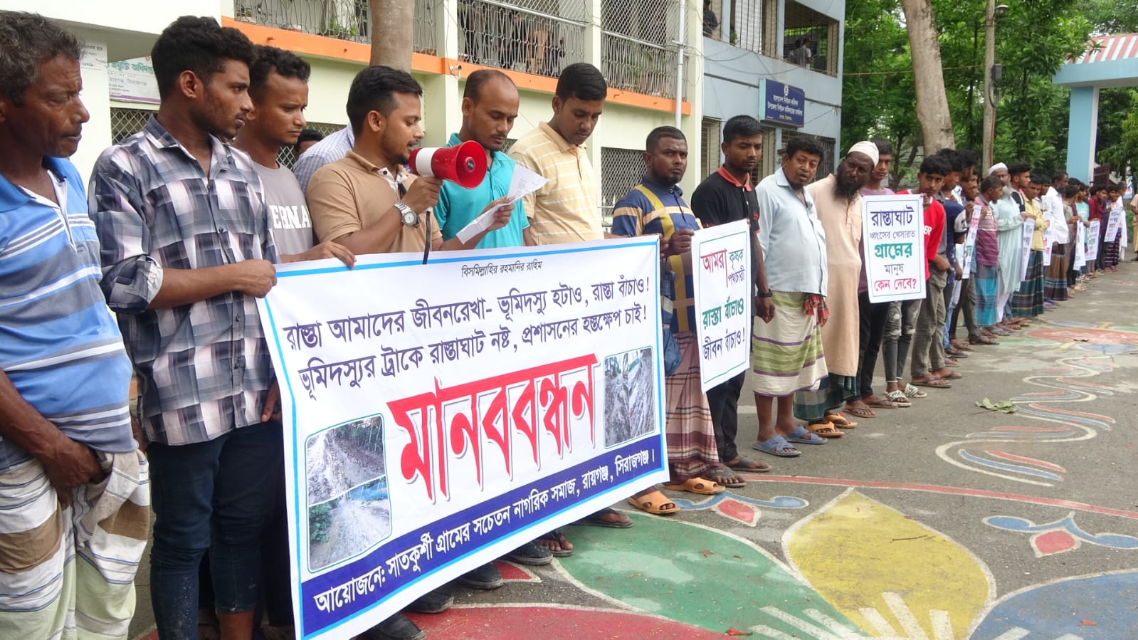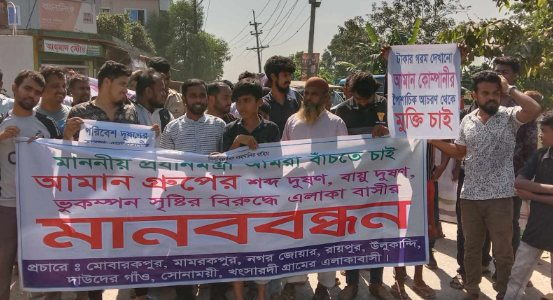 সোনারগাঁয়ে পরিবেশ দূষণের প্রতিবাদে এলাকাবাসীর মানববন্ধন