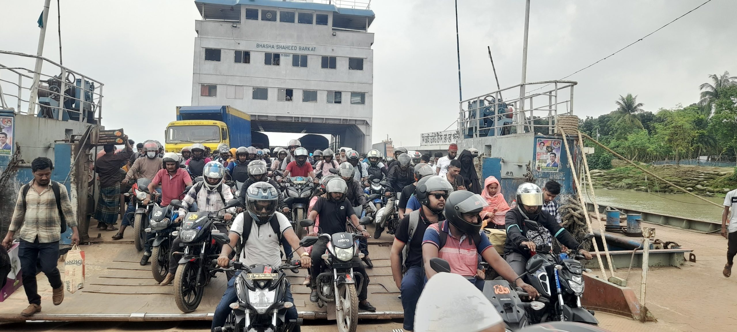 রাজবাড়ীর দৌলতদিয়া ঘাটে রাজধানী ছেড়ে আসা ঘরমুখো মানুষের ভীড়