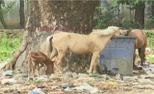 চট্টগ্রামে আবর্জনার ভাগাড়ে খাবারের সন্ধানে ঘুরে বেড়াচ্ছে শত শত ঘোড়া