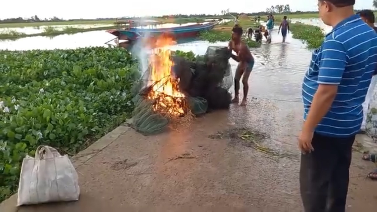 সিংড়ায় দুই লক্ষাধিক টাকার চায়না জাল পুড়িয়ে দিল প্রশাসন