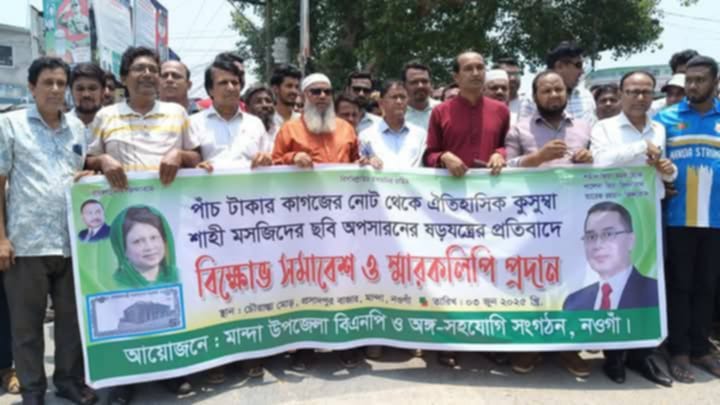 পাঁচ টাকার নোট থেকে কুসুম্বা মসজিদের ছবি প্রত্যাহারের প্রতিবাদে বিক্ষোভ