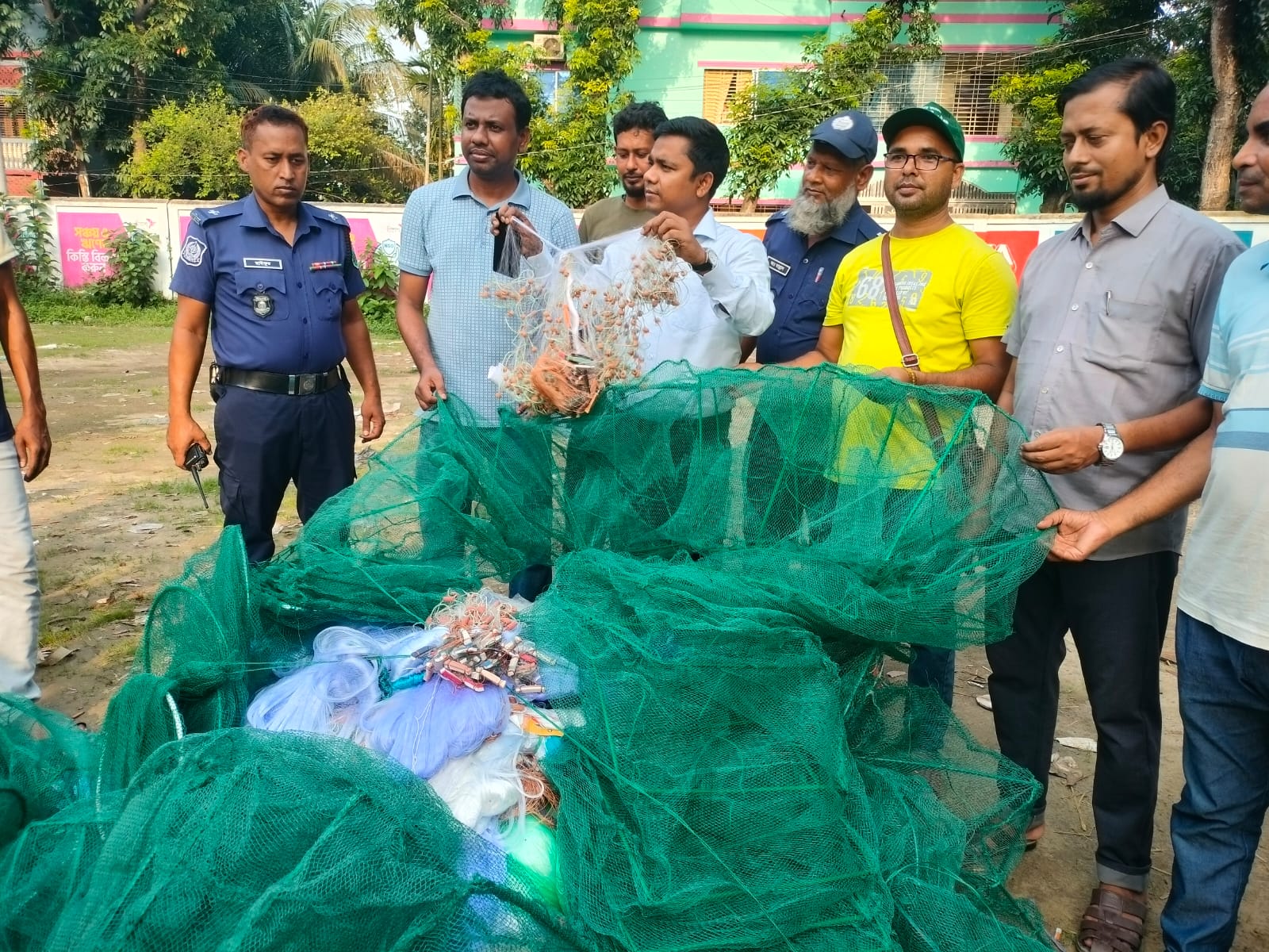 সিংড়ায় সাত লক্ষ টাকার অবৈধ নিষিদ্ধ জাল ধ্বংস