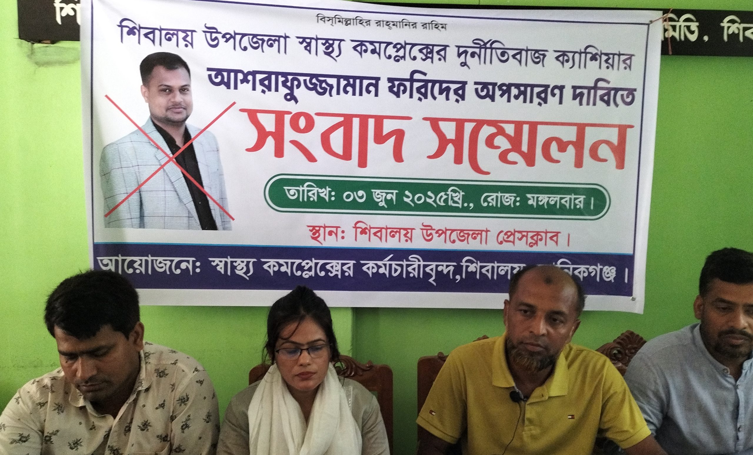 মানিকগঞ্জে স্বাস্থ্য কমপ্লেক্সের প্রধান সহকারীর অপসারণ দাবিতে সংবাদ সম্মেলন