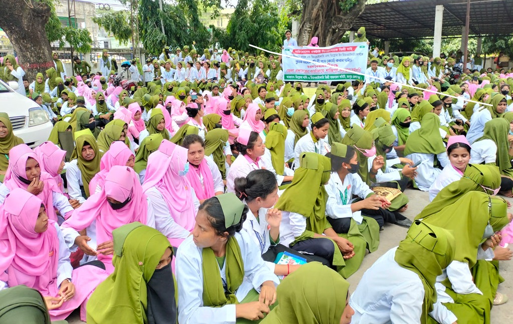 রংপুরে জেলা প্রশাসকের কার্যালয়ের সামনে নার্সিং শিক্ষার্থীদের অবস্থান