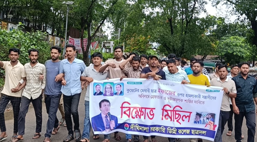 কুয়েট শিক্ষার্থীর ওপর হামলার প্রতিবাদে দীঘিনালায় বিক্ষোভ