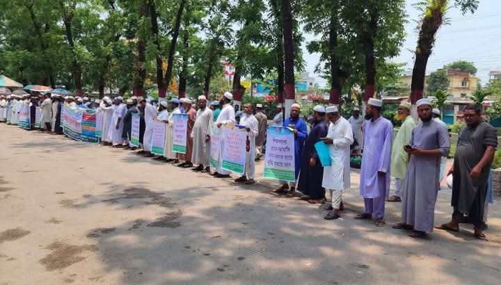 ফেনীতে ৫ দফা দাবীতে মসজিদ ভিত্তিক শিশু ও গণশিক্ষা কার্যক্রমের শিক্ষকদের মানববন্ধন