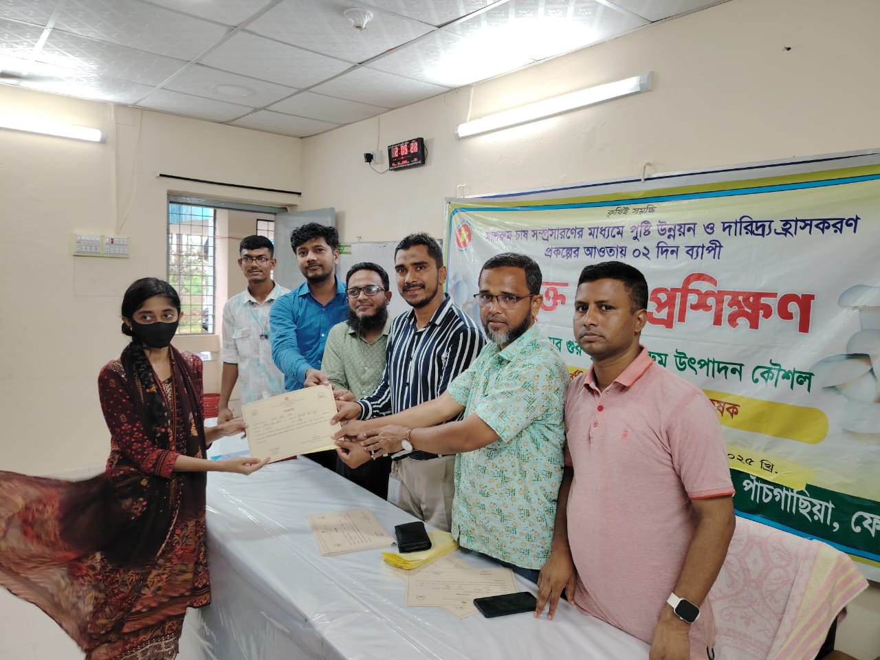 ফেনীতে মাশরুম চাষী প্রশিক্ষণার্থীদের সনদ বিতরণ