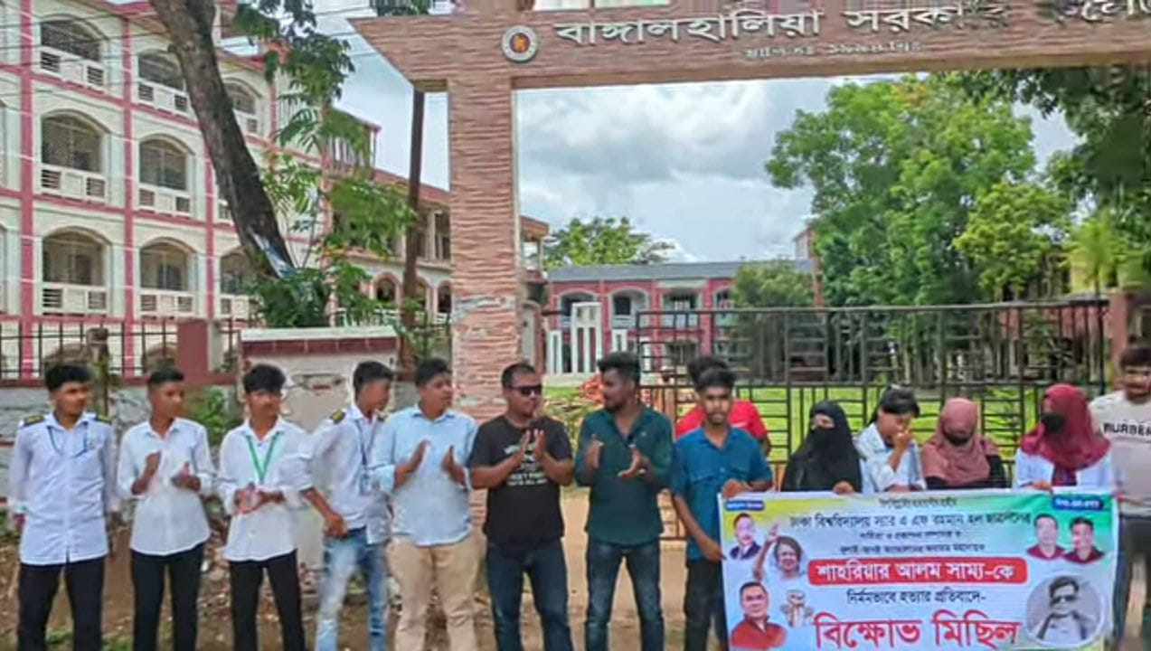 ঢাবি শিক্ষার্থী শাহরিয়ার আলম সাম্য হত্যার বিচারের দাবি বাঙ্গালহালিয়া ছাত্রদলের বিক্ষোভ মিছিল