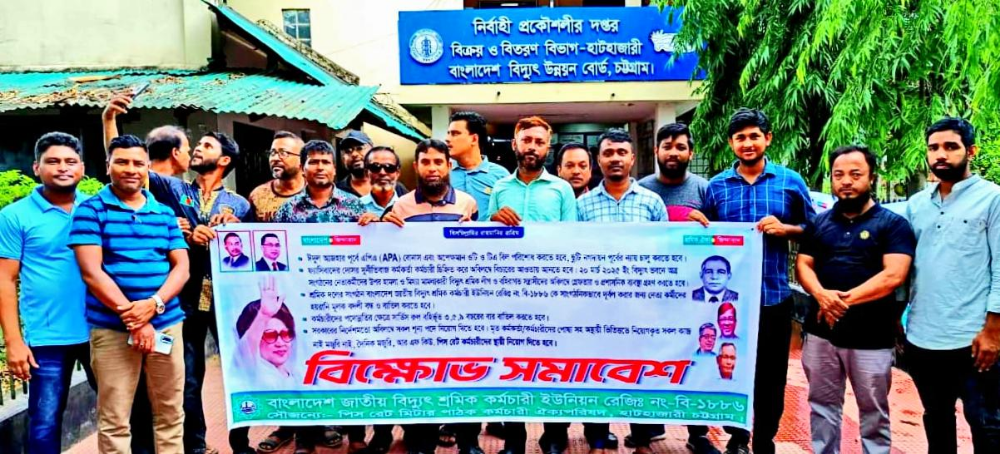 হাটহাজারীতে বিদ্যুৎ শ্রমিকদের ৫ দফা দাবিতে বিক্ষোভ