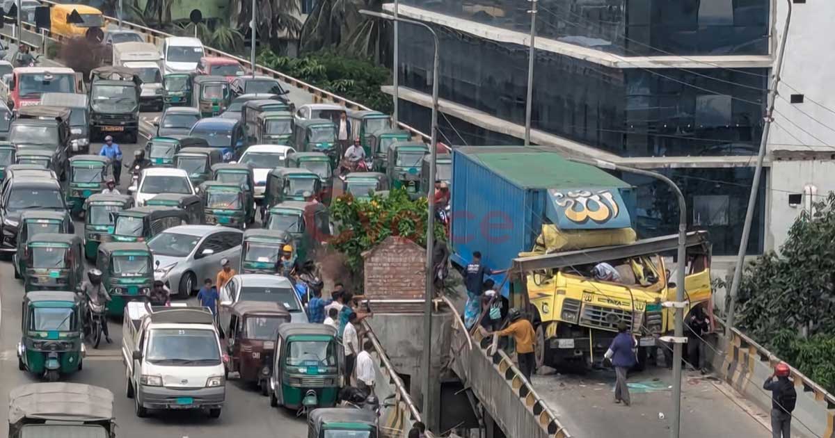 ফ্লাইওভারের উচ্চতা প্রতিবন্ধকে কাভার্ডভ্যানের ধাক্কা