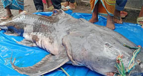 গাইবান্ধায় জালে আটকা পড়েছে ৭২ কেজির বাগাড়