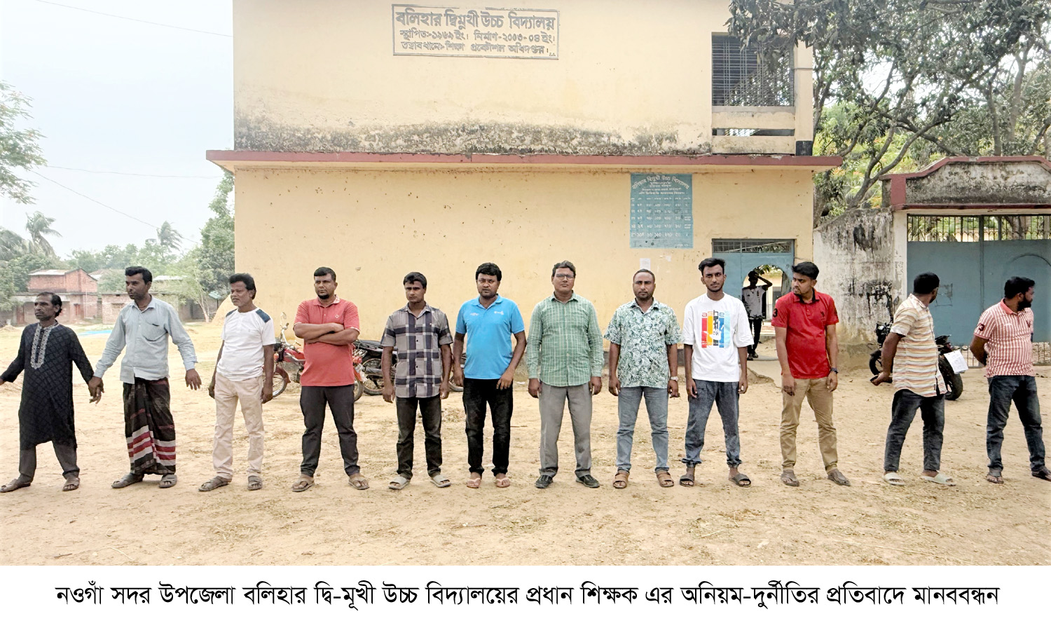 বিদ্যালয়ের প্রধান শিক্ষকের অনিয়ম-দুর্নীতির প্রতিবাদে নওগাঁয় মানববন্ধন