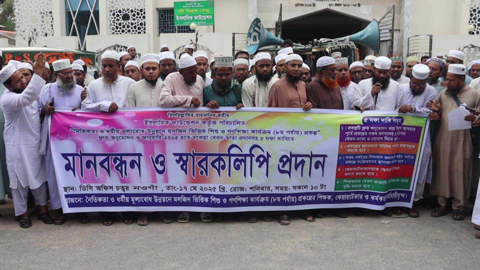 নওগাঁয় ৫ দফা দাবিতে শিক্ষকদের মানববন্ধন