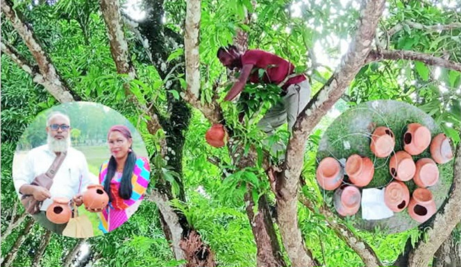 পীরগাছায় উপজেলা পরিষদ চত্বরের গাছগুলো যেন হঠাৎ করেই হয়ে উঠেছে পাখিদের নতুন ঠিকানা
