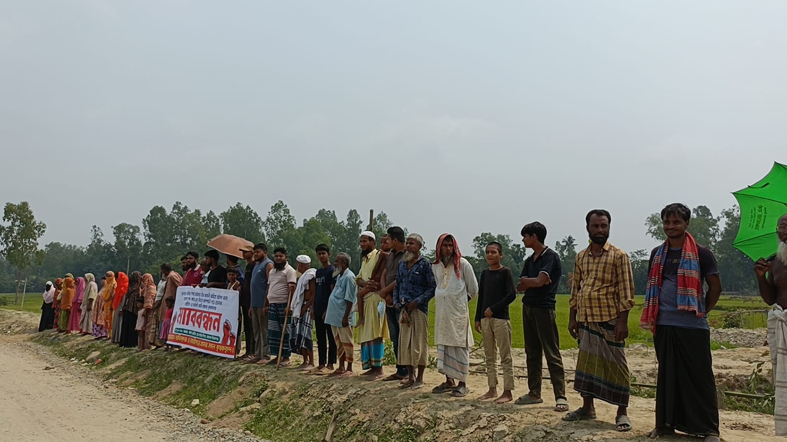 রায়গঞ্জে তিন ফসলী জমিতে কোম্পানি তৈরির প্রতিবাদে ও আবাদি জমি রক্ষায় কৃষকদের মানববন্ধন