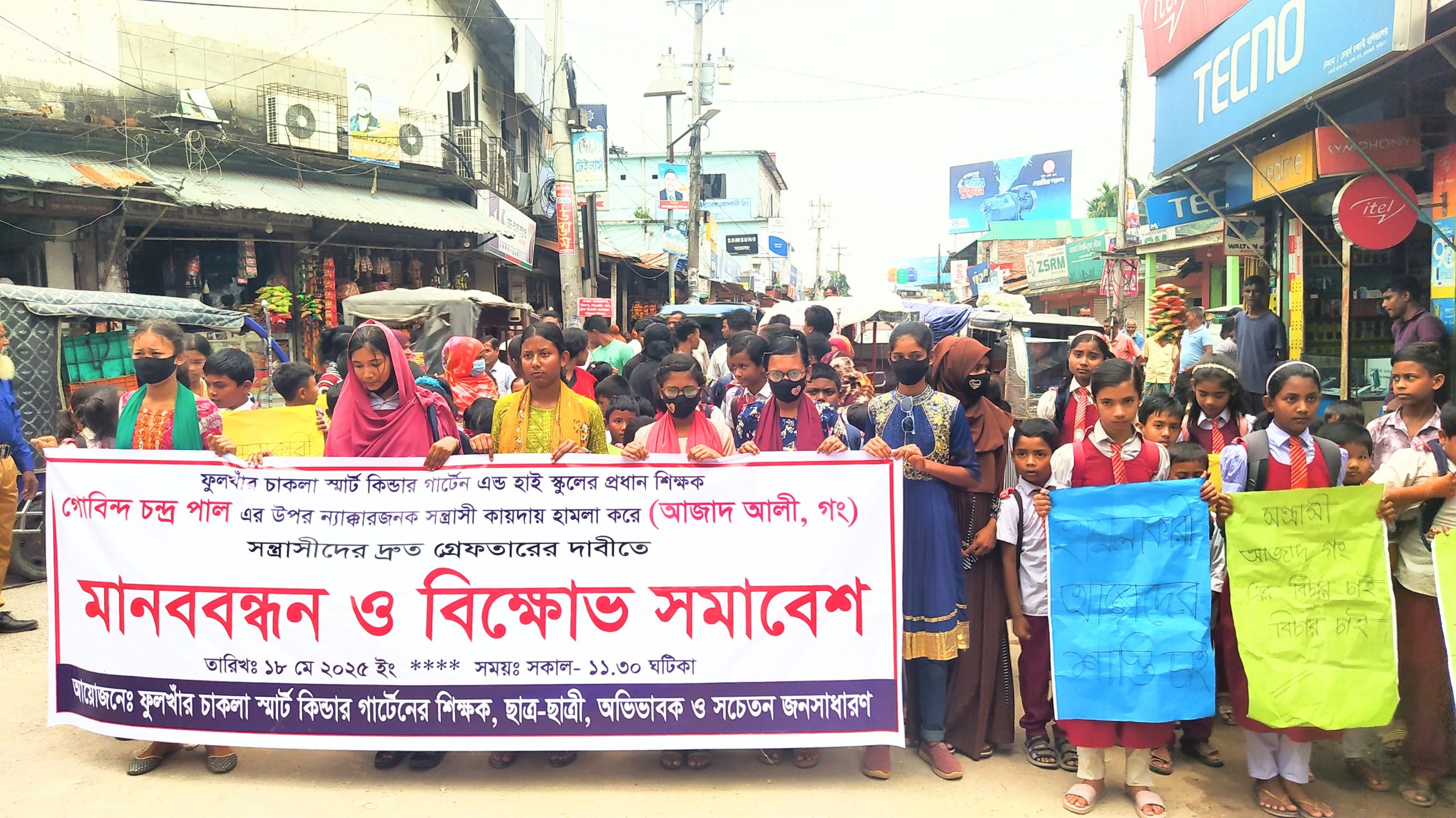 রাজারহাটে প্রধান শিক্ষককে মারধরের বিচারের দাবিতে মানববন্ধন অনুষ্ঠিত