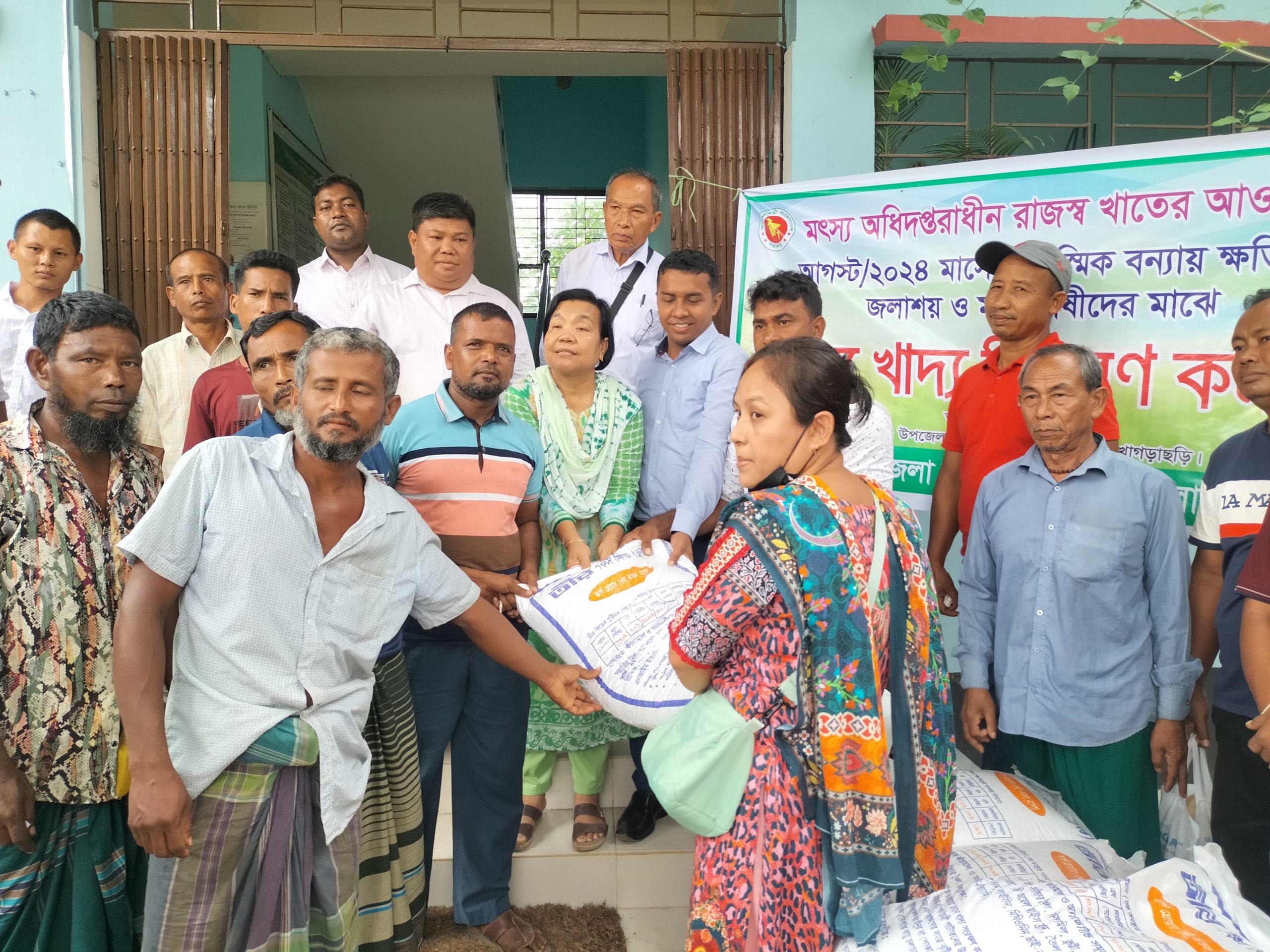 দীঘিনালায় মৎস্যচাষীদের মাঝে মাছের খাদ্য বিতরন