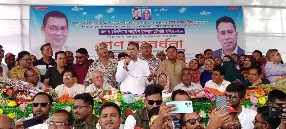 নীলফামারীতে খালেদা জিয়ার ভাগ্নে তুহিনকে গণসংবর্ধনা