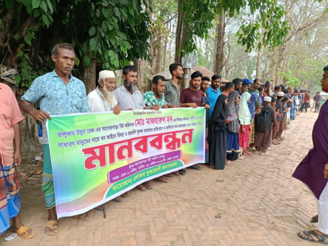 ভালুকায় বন কর্মকর্তার শাস্তির দাবিতে মানববন্ধন
