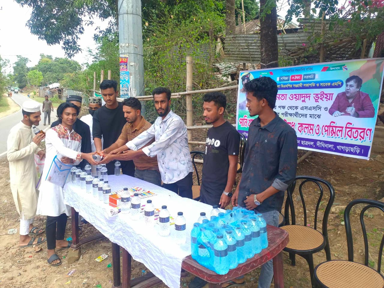 দীঘিনালায় পরীক্ষার্থীর মাঝে পানি ওরস্যালাইন কলম টিসু বিতরণ