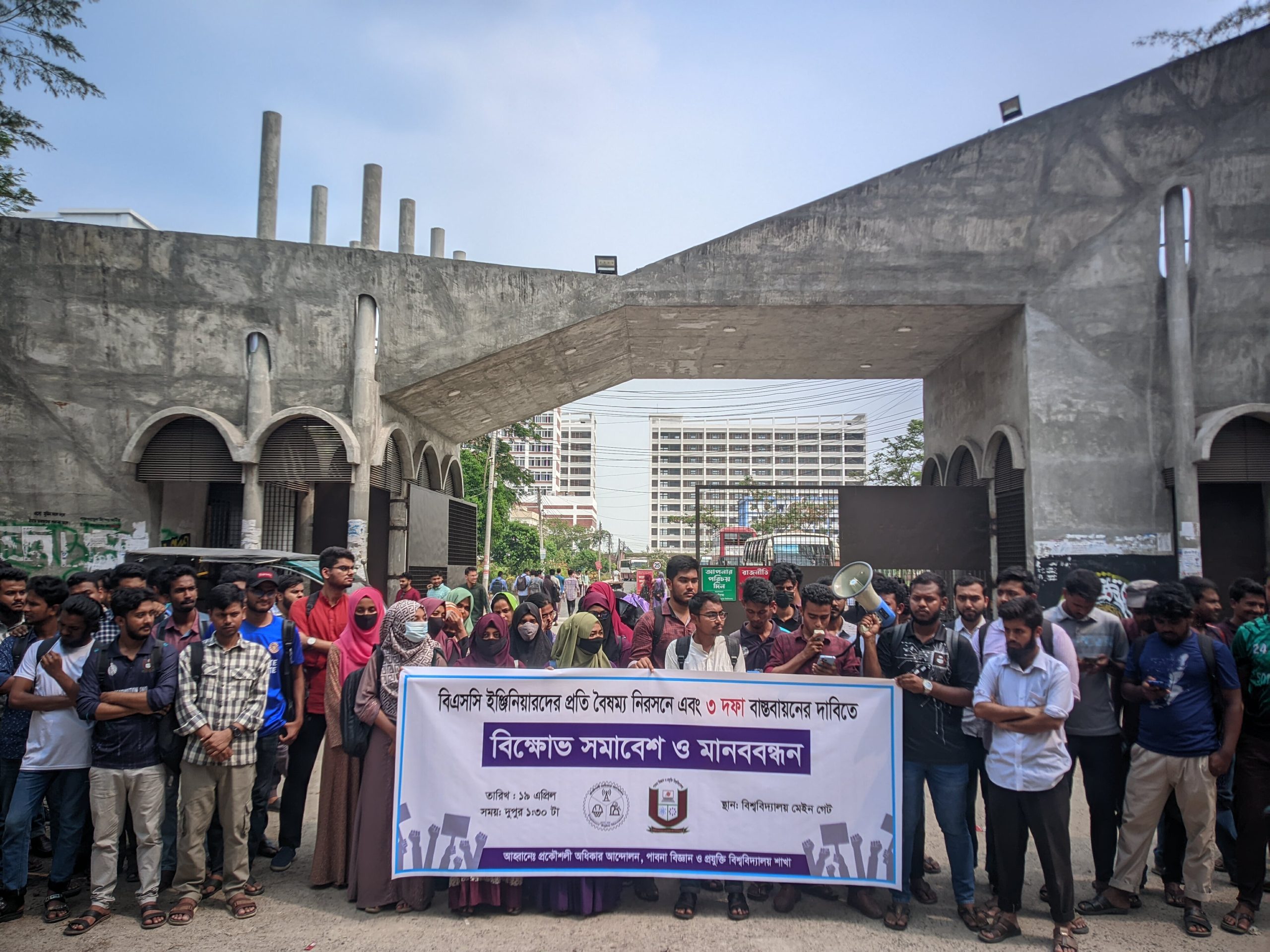 ৩ দফা দাবিতে পাবিপ্রবির ইঞ্জিনিয়ারিং বিভাগের শিক্ষার্থীদের বিক্ষোভ সমাবেশ ও মানববন্ধন