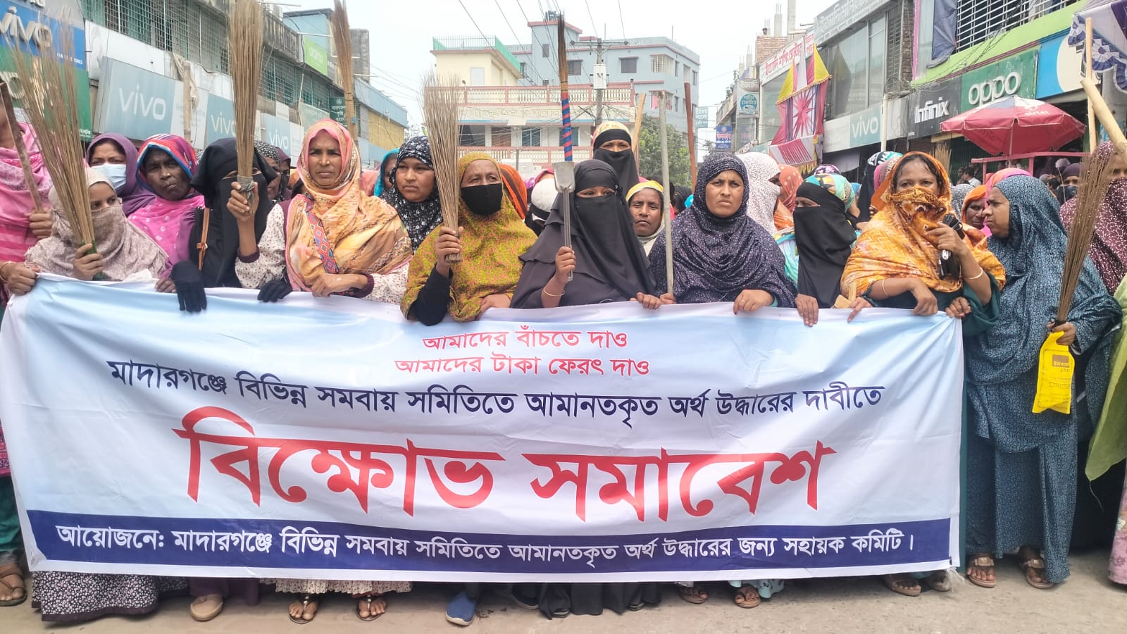 জামালপুরে সমবায় সমিতির নামে লুটপাট, ঝাড়ু মিছিল ও সড়ক অবরোধ