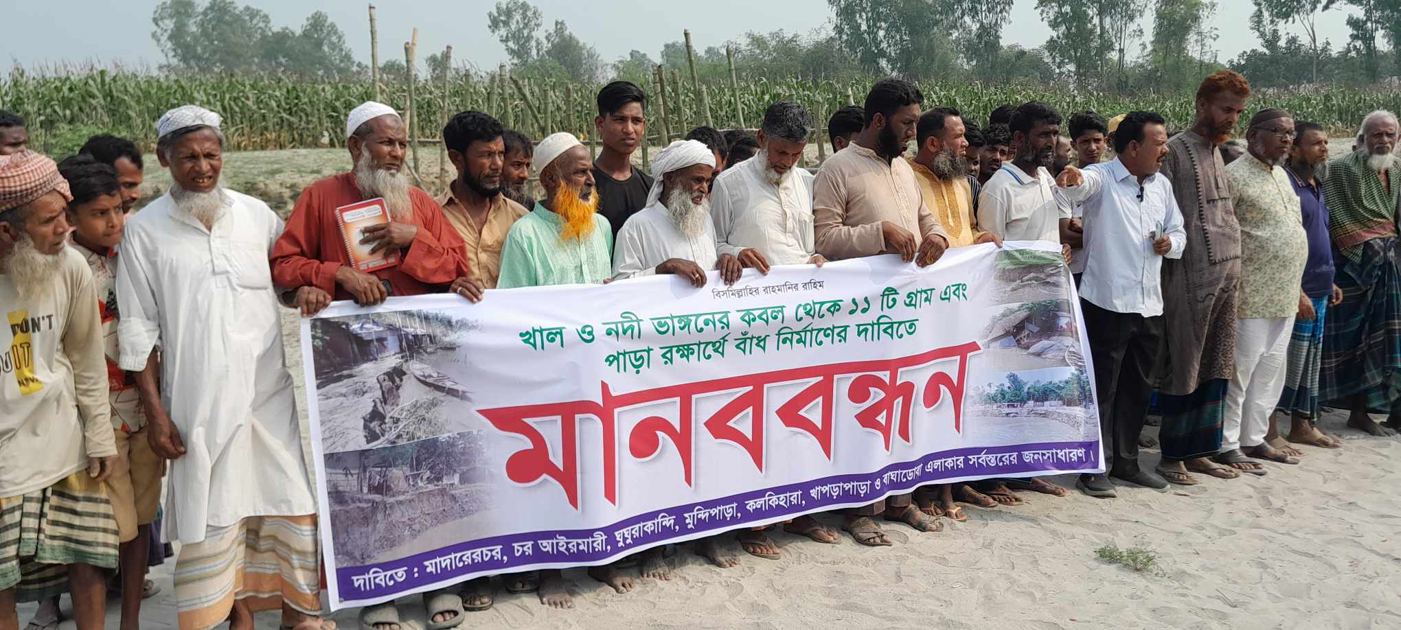 বকশীগঞ্জে বাঁধ নির্মাণের দাবিতে মানববন্ধন